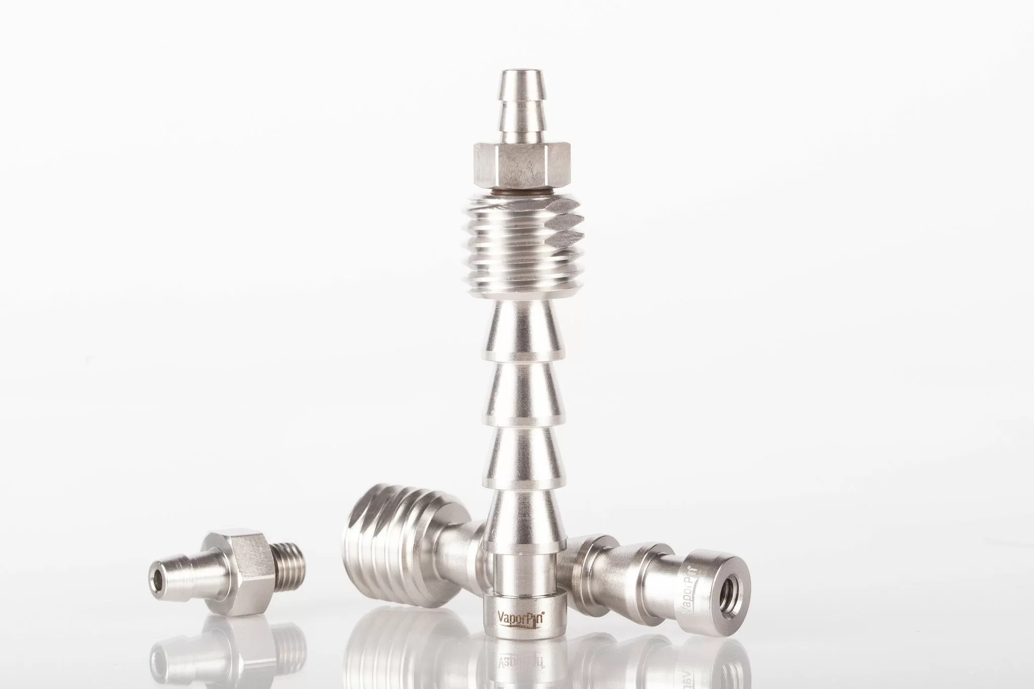Los dispositivos de muestreo Vapor Pin® están fabricados en acero inoxidable, latón y aluminio anodizado, lo que permite extraerlos para su reutilización. Los únicos consumibles son los manguitos Vapor Pin® y los tapones Vapor Pin®, que deben sustituirse después de extraer y limpiar los dispositivos de muestreo.